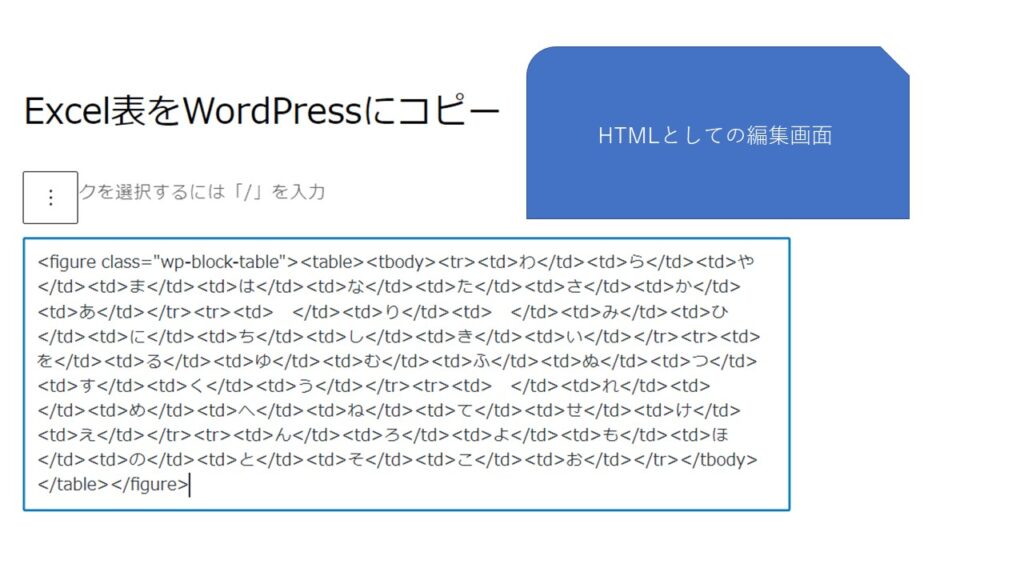 Excelで作った表を、WordPressにコピーして貼り付けたい。